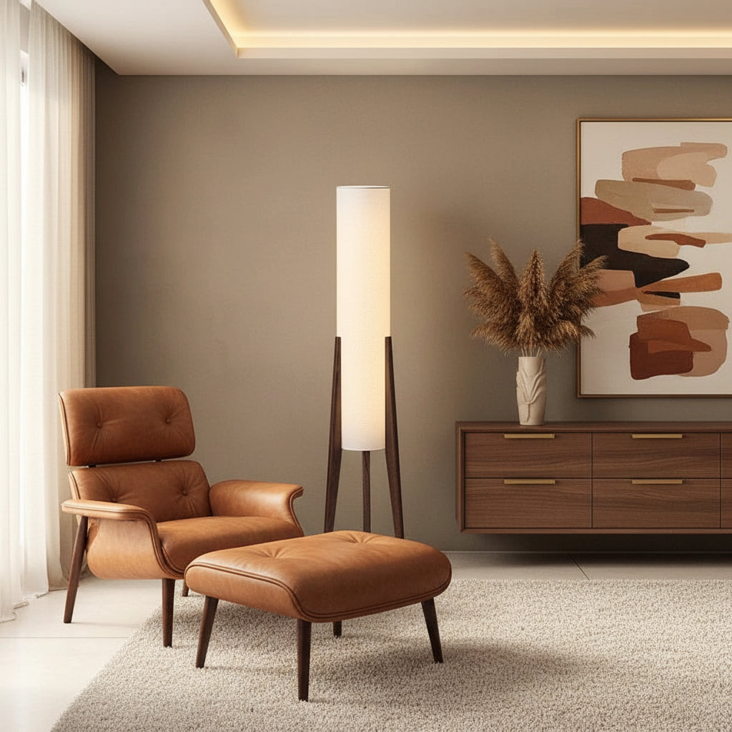 There's a reason hygge design has become the defining aesthetic of mindful, modern living: it perfectly balances the clean functionality of Scandinavian design with the serene minimalism of Japanese philosophy. The Hygge Harmony Floor Lamp embodies this convergenc, crafted from sustainable solid wood with a soft fabric shade that diffuses light to create warm, ambient glow.